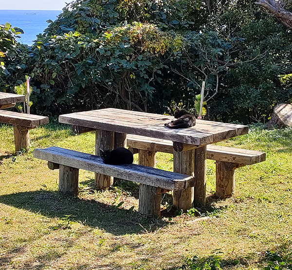 この遊歩道にはいたるところにネコチャンがおり、天国でした。かわええ。