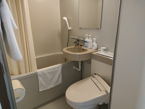 アメニティは必要最低限と言う感じ。歯ブラシ、カミソリはあるけどボディスポンジが無かったので、近くのダイソーに買いに行きました。