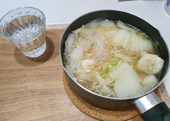 今日(3日)はもらった白菜使って家で鍋にしました。