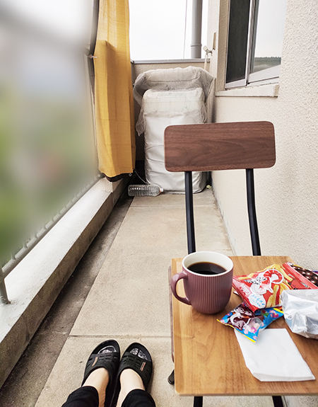 でも1日中引きこもってると閉塞感があるので、ベランダにチェアを持ち込んで外の空気を吸っています。